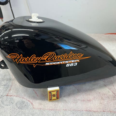 Harley-Davidson bensintank i metall med spesiallakkert airbrush-design.