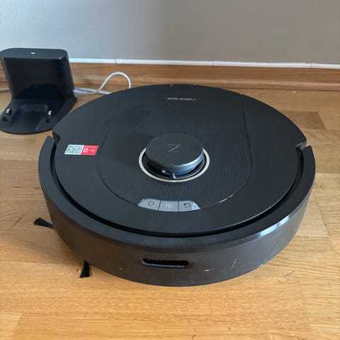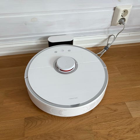 Roborock robotstøvsuger i hvit farge. Enheten er rund med toppmontert lasersensor for navigasjon. Passer til automatisk støvsuging av harde gulv og tepper i hjemmet. Robotstøvsugeren er lav nok til å komme under mange møbler og har frontsensorer for hinderdeteksjon. Egner seg for daglig rengjøring av bolig, leilighet eller kontorområder med jevne gulvflater.