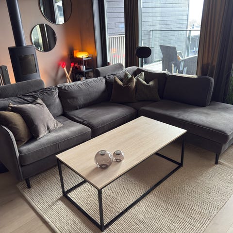 Hel og pen og med trekk som kan tas av å vaskes. Armlene har ekstra stoff for beskyttelse,så de har ingen slitasje.