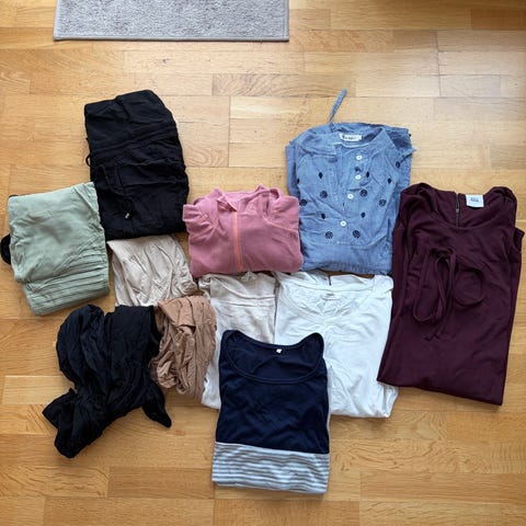 Klærne er pent brukt, men ligget pakket ned en stund. Trenger en stryk 😊