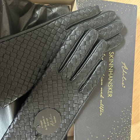 Ubrukte skinnhansker selges da jeg fikk 2 par. Nydelige myke hansker med fine effekter. Passer hanske str 6,5 - 7,5.