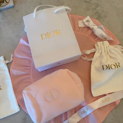 Babyrosa pouch/clutch/makeupbag fra Christian Dior, med innhold. Alt er uåpnet og ubrukt 💗