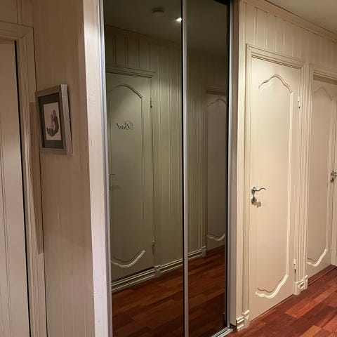 Skyvedørsgarderobe, garderobe, hvit, speildør, profil, skapdør, skyvedør, skap, garderobeskap, nisje, oppbevaring