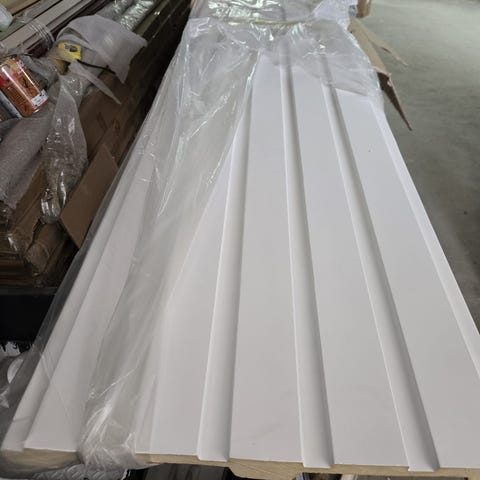 Lamellpanel veggpanel i svart farge. Kjøpt for mye. har vertikale ribber/lameller som gir en strukturert overflate egnet til bruk på vegg innendørs. Passer for oppussing eller innredning av rom der man ønsker et moderne uttrykk og noe lyddemping. Leveres i eske som vist på bildet.