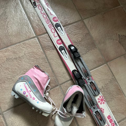 Utec barneski med staver i blå og rød farge. Skiene har integrerte bindinger med blå fotfester som gjør det enkelt for barn å ta dem av og på. Leveres sammen med tilhørende staver i matchende design. Egnet for lek og enkel skigåing for barn på flatere underlag og lette turer.