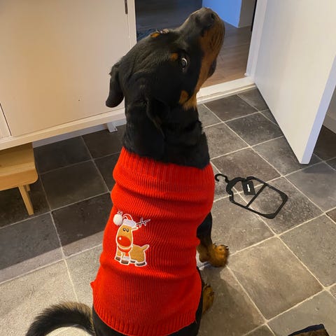 Selger denne søte julegenseren, brukt til liten dvergpincher.