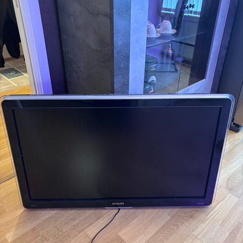 50" TV, ikke smart! I fungerende stand. Fjernkontroll og strømledning følger med. Et solid TV-stativ. TV-en er tung.