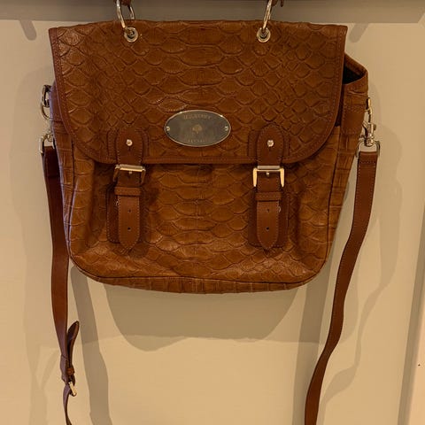 Pent brukt Mulberry Roxanne veske i farge oak vurderes solgt. Kjøpt pre-owned men har brukt den lite. Har vært oppbevart i dustbag. For å forhindre at skinnet tørker ut, er den behandlet med voks som beskytter og restaurerer skinnet. Mål: 35 cm bred, 20 cm høy og 18 cm dyp.