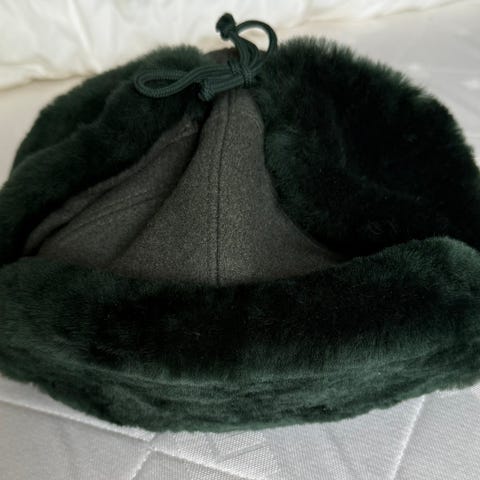 Brukt en gang. Ble for trang for mitt hode. Str. 59. Har du omkrets 58 rundt hodet, passer denne luen. Veldig varm og god.