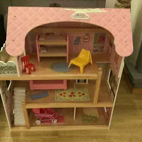 Kjempefint dukkehus inkludert møbler og dukker. Slitt enkelte steder men masse bruk igjen!