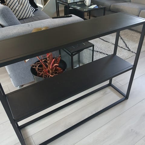 Konsollbord i MDF med en organisk og asymmetrisk form. Bordet har én praktisk hylle og passer perfekt som avlastningsbord i stue, gang eller soverom.