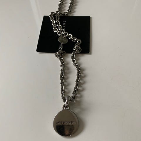Tom Wood smykke i sølv for unisex. Smykket består av en rund anheng med preget motiv og en lenke i sølvfarget metall. Hovedmaterialet er sølv kombinert med andre materialer. Leveres med original rund eske fra Tom Wood, som egner seg til oppbevaring av smykket når det ikke er i bruk.