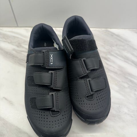 Shimano sykkelsko for klikkpedaler med SPD-cleats. Skoene er i størrelse 43 og har grønn overdel med svart såle og detaljer. Undersiden har grovmønstret gummisåle med integrerte SPD-klosser. Overdelen har strammesystem med dreiestrammer og wire for jevn tilpasning. Egnet til sykling med SPD-kompatible pedaler, for eksempel terrengsykkel, pendling eller tursykling.