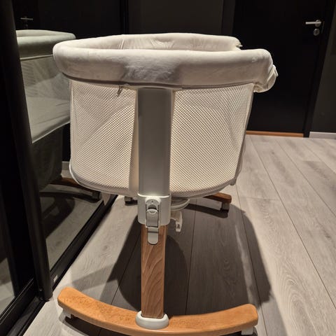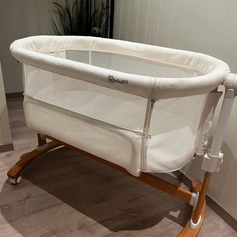 Pent brukt bedside crib.