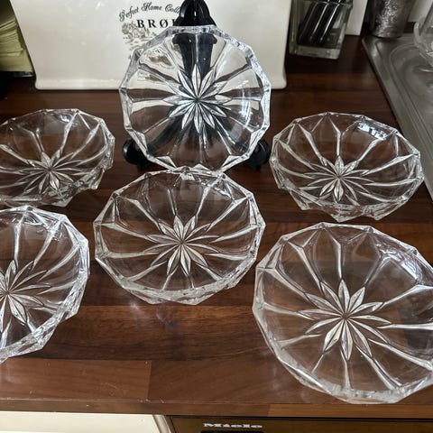 Dessertskåler i krystall 6stk 14cm i diam.
