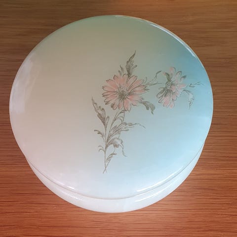 Det er et enkelt, men vakkert skrin med graverte blomster på lokket.