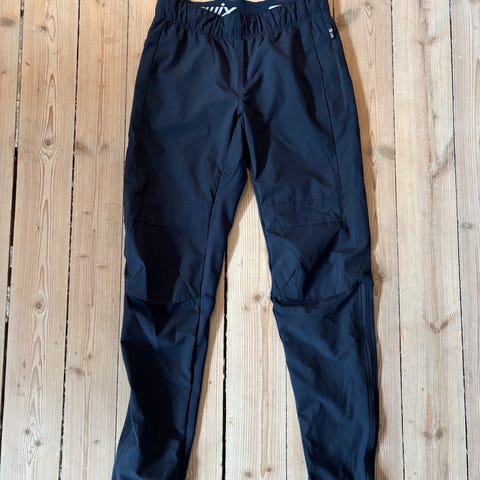 Swix Goretex langrennsbukse for herre i størrelse M. Buksen er svart og har strikk i livet med Swix-logo.