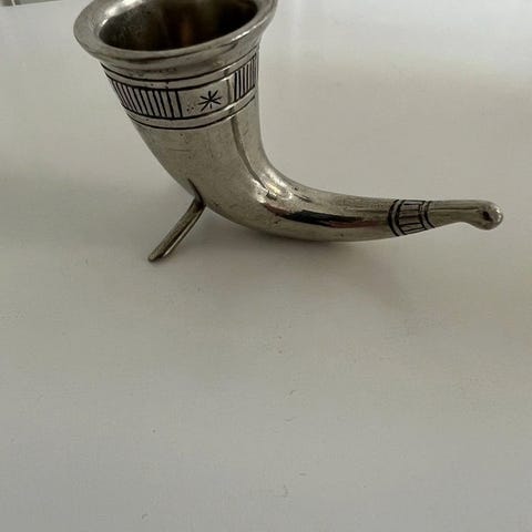 Drikkehorn med lokk og tinndetaljer. Ingen merker