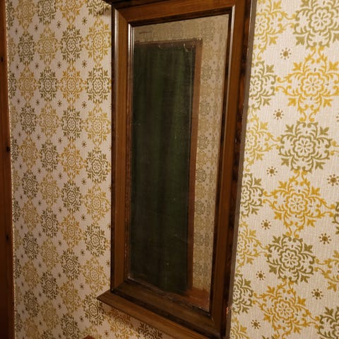 Rosemalt skap til plassering på gulv. Dør i front med 2 stk original hylleplate inne i skap. Skapet har bunn og liten sokkel. B 114 x D 60 x H89