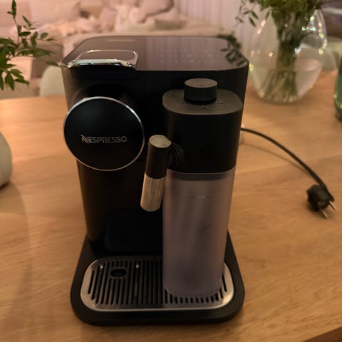 Selger en strøken Nespresso Gran Lattissima som er kjøpt i 2023 grunnet overgang til baristamaskin. Denne har vi vært veldig fornøyd med. Ny pris er 5 199 kr, kjøpt fra Nespresso sin hjemmeside. Pent pakket i medfølgende eske! Obs, får ikke sendt denne i posten.