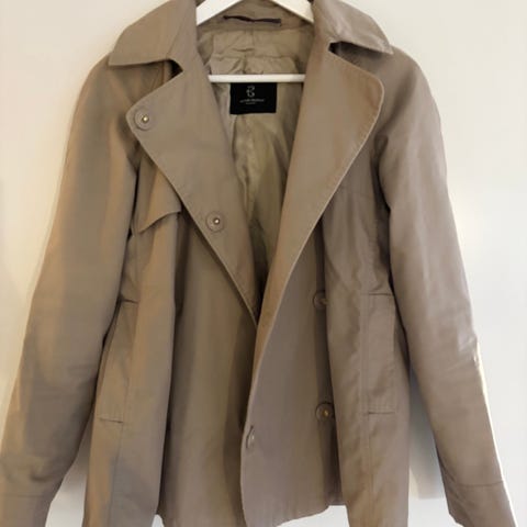 Ulljakke fra Bruuns Bazaar i 100 prosent ull. Størrelse 34. Pent brukt, men har en flekk I foret i nakken som kan sees på bilde to og tre (som ikke syns når jakken er på). Kjøpt på boozt.com for flere år siden, men kun brukt et par ganger hvert år. Ny pris var 2799 kroner.