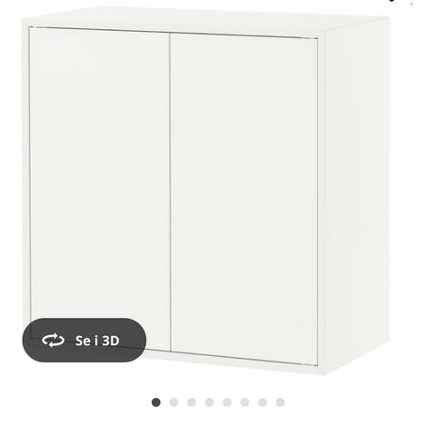 Pent brukt, men har hengt i Ivar hyllesystem, så noe skruehull i forbindelse med montering kan finnes. Ene skapet har ei ripe på toppen, ellers hele og pene, men noe småskader kan finnes.