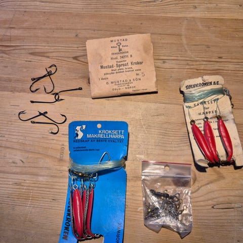 Gammel veske /skrin til fiskeutstyr/sluker/kroker, ect. Usikker på hva denne heter og alder, men er arv og gammel. Fremstår solid.