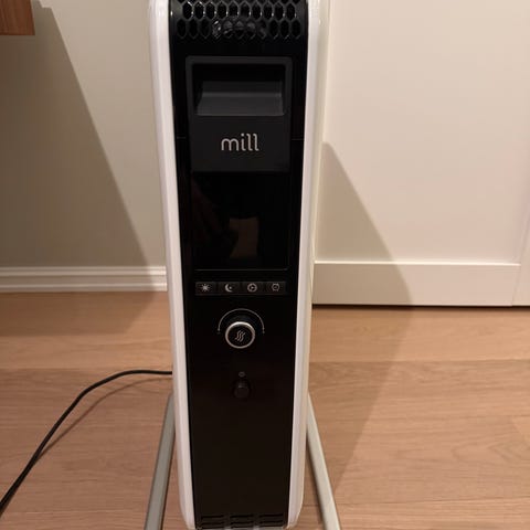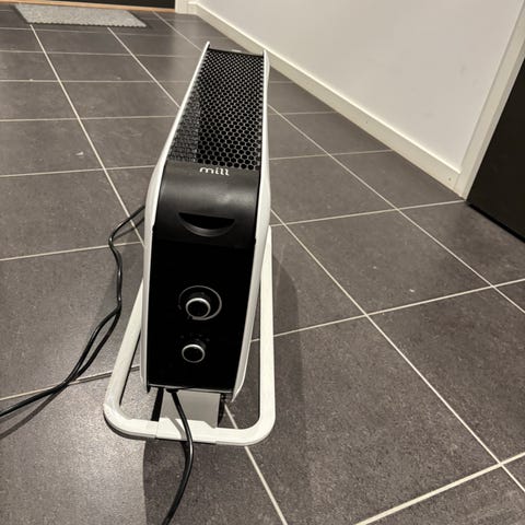 Mill oljefylt radiator gulvovn i svart farge. Frittstående modell med stabil fot og integrert ledning. Elektrisk panelovn med digitalt display og betjeningsknapper på fronten. Egnet som tilleggsvarme i rom der det er behov for ekstra oppvarming. Brukes til innendørs oppvarming og kobles til vanlig stikkontakt.