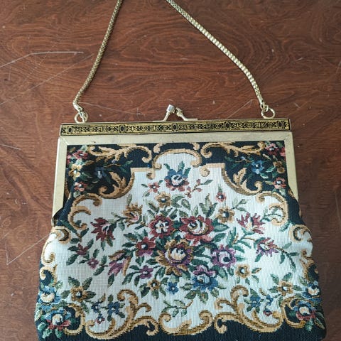 Vintage koboltblå håndveske i råsilke