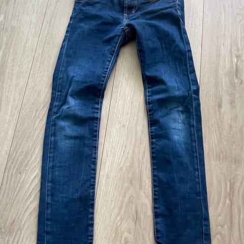 Omtrent ikke brukt. Levi's 510 Skinny jeans for barn i størrelse 140. Buksen er unisex og laget i blå denim. Modellen har smal passform (skinny), klassisk femlommersdesign og strikk i livet bak for bedre passform. Egnet til hverdagsbruk for både jenter og gutter i ca. størrelse 140..