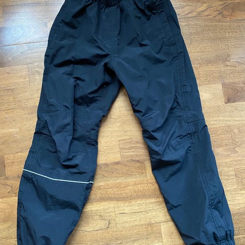 Lindex barnebukse i svart farge, unisex modell i størrelse 146. Buksen er laget av polyamid. Den har strikk i livet og nederst ved bena for bedre passform. Refleksdetalj rundt det ene benet gir økt synlighet i mørket. Egnet som ytterbukse til hverdagsbruk for barn i aktuell høyde/størrelse.