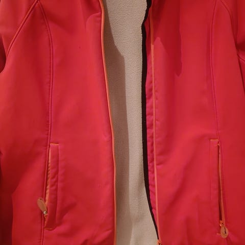 Anna Field jakke for dame i størrelse L. Jakken er rød og laget i fantastisk kvalitet. Modellen har glidelås i front og glidelåslommer i sidene. Rett fasong med ståkrage og detaljer på ermene.