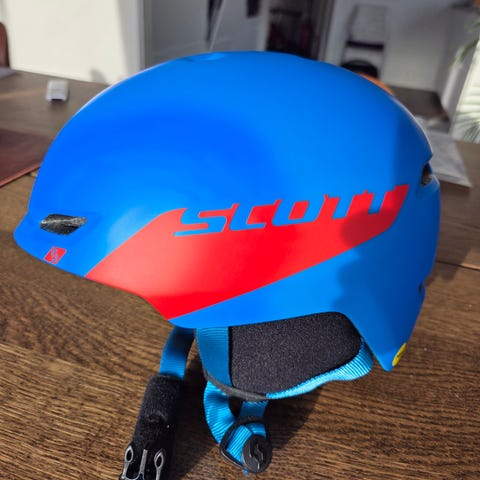 Hjelmen er blå med røde detaljer og har MIPS-teknologi for økt beskyttelse ved rotasjonskrefter. Justerbar passform med strammehjul i nakken og hakestropp med klips. Flere ventilasjonsåpninger for lufting. Egnet til alpint og snowboardbruk.