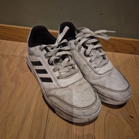 Skoene er brukt en gang før sønnen vokste ut av dem