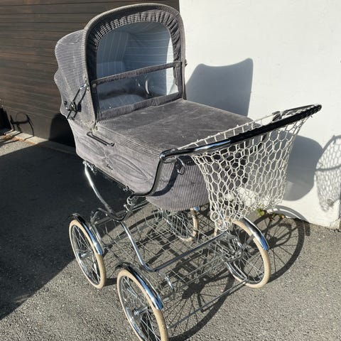 Har alltid vært oppbevart tørt innendørs. Den har sine bruksmerker ettersom jeg har brukt den som hovedvogn til to barn. Original bruksanvisning følger med og retro handlenett.