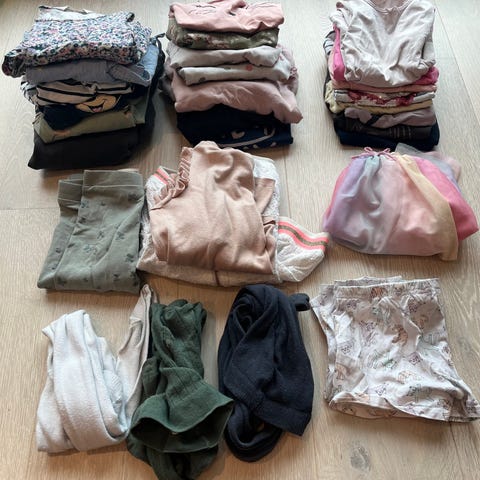 Noen plagg er mer brukt. Flekker kan forekomme.