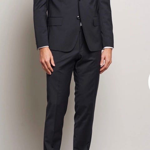 Både bukse og jakke er i størrelse 48, og buksa tilsvarer størrelse 30/30.