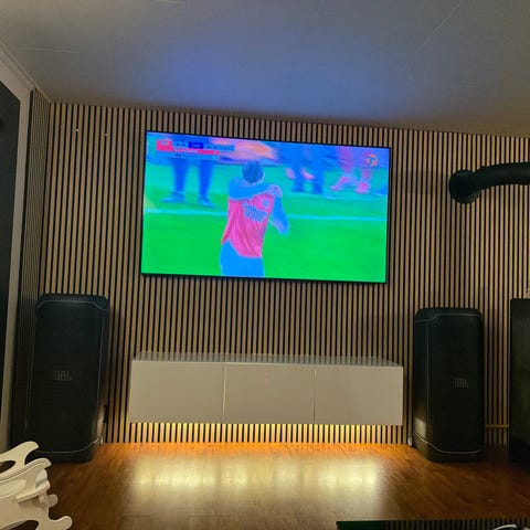 Samsung TV 55"med tilhørende lydplanke (kan også selges uten planken). Modell GQ55QN85CAT Neo QLED 4 K Smart TV fra 2021.
