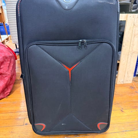 Kofferten er svart med røde detaljer og har uttrekkbart teleskophåndtak og to hjul for enkel transport. Innvendig er den utstyrt med stropper for å holde innholdet på plass samt nettinglomme i lokket for organisering av mindre gjenstander.