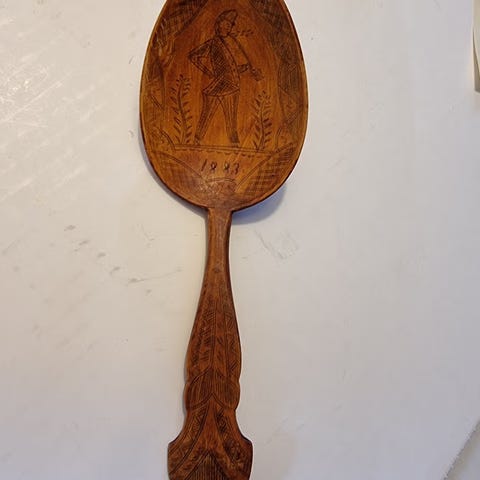 Treskjeer med dekorative utskjæringer og årstall var vanlig i folkekunsten, spesielt på 1800-tallet.