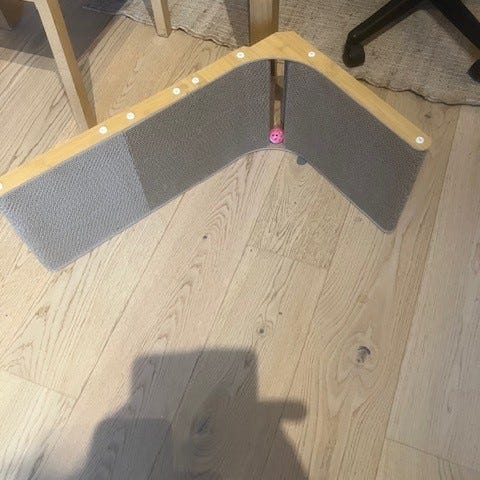 Det er 70cm i høyden, så katten kan få en fin strekk og klore om de liker papp.