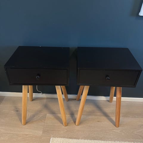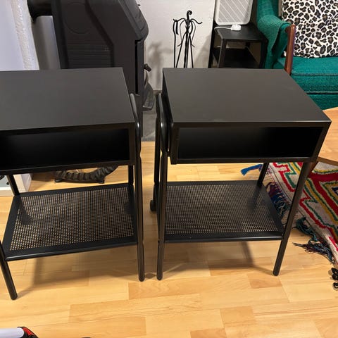 2 stilige nattbord fra JYSK i svart metall inkl. lamper