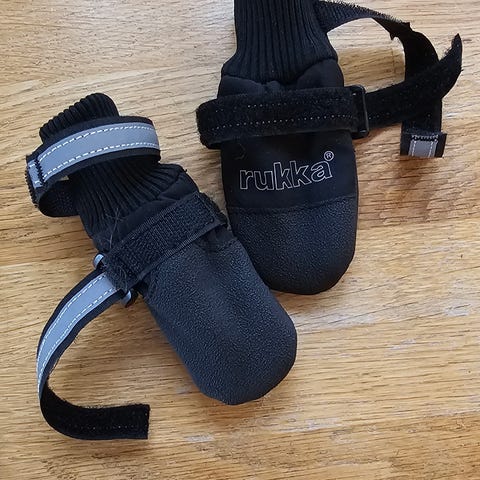 Trixie Walker potebeskyttelse til hund i svart farge. Myke beskyttelsessokker som dekker potene og festes med borrelås. Refleksdetaljer gir bedre synlighet i mørket. Egnet for å beskytte hundens poter mot kulde, varme, salt, småskader eller etter veterinærbehandling. Leveres i sett med flere sokker og originalemballasje merket «Pfotenschutz Walking Care» fra Trixie.