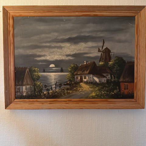 Ukjent kunstner maleri med norsk bygdemotiv i ramme