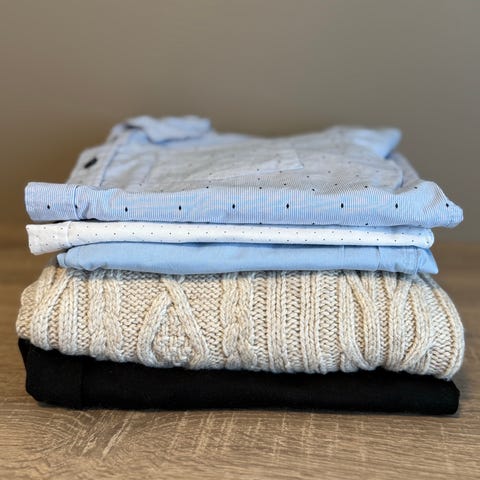 Grønn genser fra Primark, jumper og hettegenser fra J&J og t-skjorte fra Hummel.