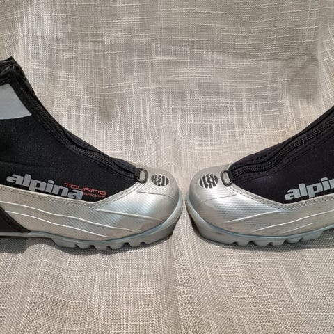 Alpina langrennsstøvler i svart og sølv, pent brukt.
