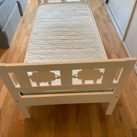 Få bruksmerker. Sengehest, madrass og overtrekkslaken følger med hvis ønskelig.