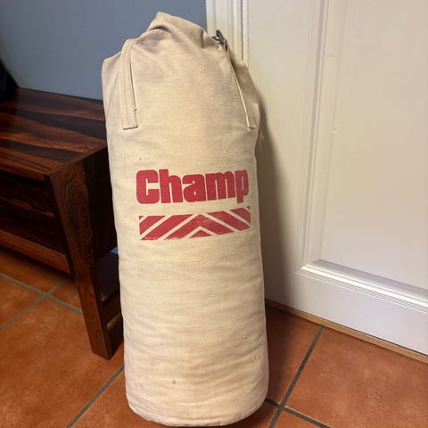 Stor boksesekk i svart og hvit farge. Egnet til boksing, kickboksing og annen kampsporttrening. Henges opp i tak eller stativ med opphengsfester. Passer til trening hjemme eller i treningsrom for slag- og sparktrening. Følger med 2 bokse hansker for 300kr