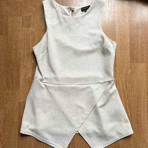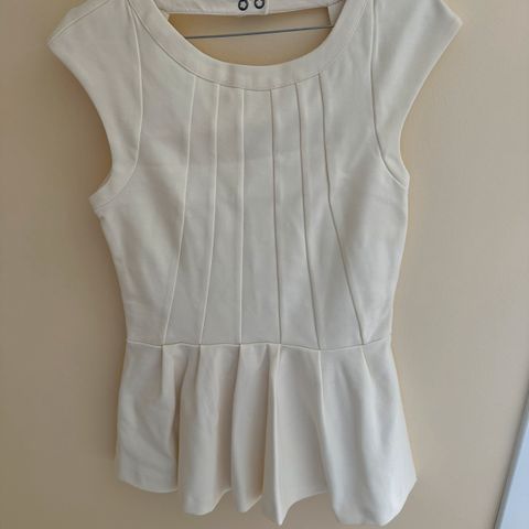 Hvit peplumtopp fra Oasis i pent, glatt stoff. Str 32 på lappen, men tilsvarer en normal XS.