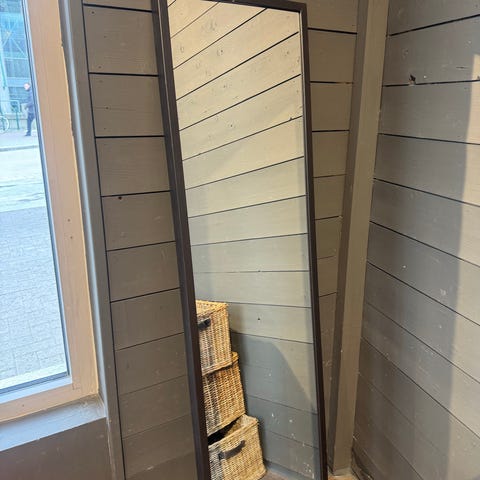 Stort, solid frisørspeil med Led belysning- list i rammen, og bryter på side av speilet.